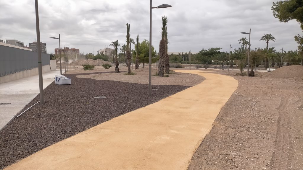 Nuevos Espacios: Se han creado más de 3.168 m² de nuevo pavimento de hormigón (acabado rayado) y 961 m² de pavimento acabado en arena tipo Albero.